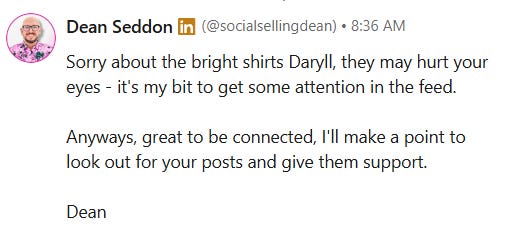 Quirky messages get better replies than boring corporate ones. “Hope you are well” is forgettable. Something unexpected is memorable.