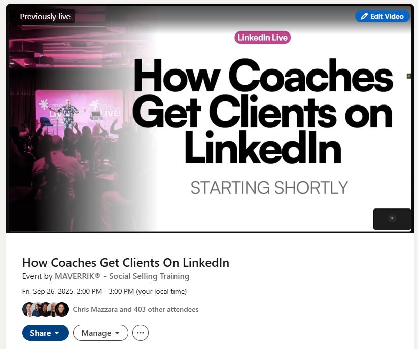 Watch my 60-min live on building a coaching business on LinkedIn: